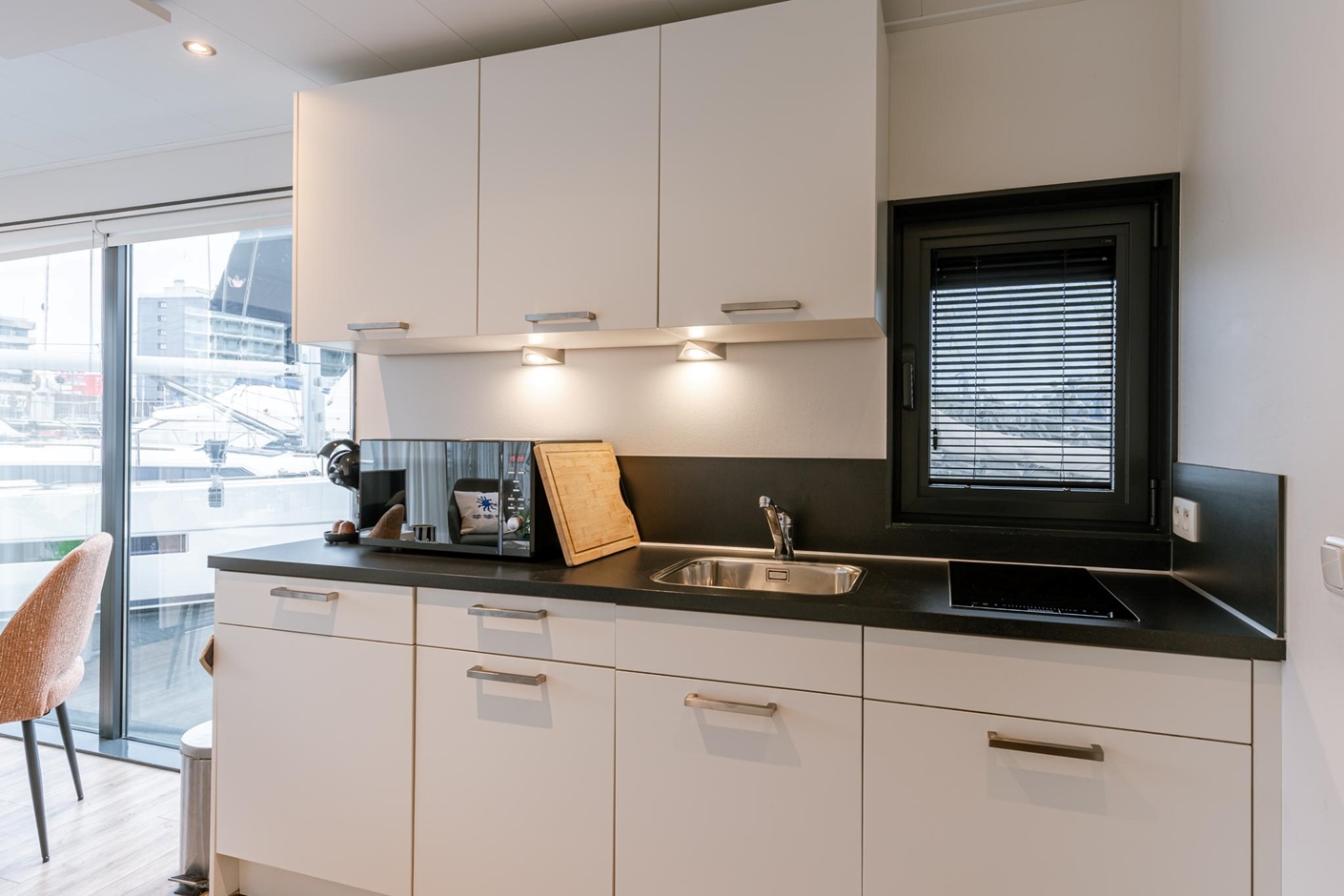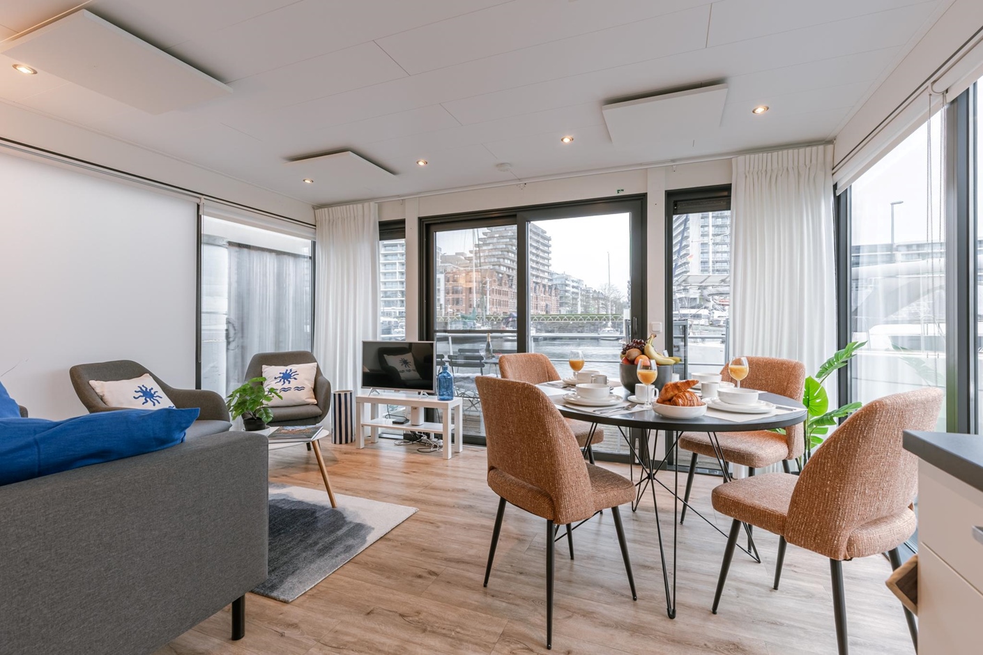 De houseboat biedt een prachtig uitzicht op het iconische schip Mercator en andere zeil- en motorboten. Aan boord geniet je van alle comfort: twee slaapkamers, waarvan één met een tweepersoonsbed en één met een stapelbed, en een badkamer met douche. De volledig uitgeruste keuken beschikt over onder andere een koelkast, vaatwasser en microgolfoven. Buiten kan je heerlijk ontspannen op je eigen terras aan het water of op het zonnige bovendek – de ideale plek om tot rust te komen.